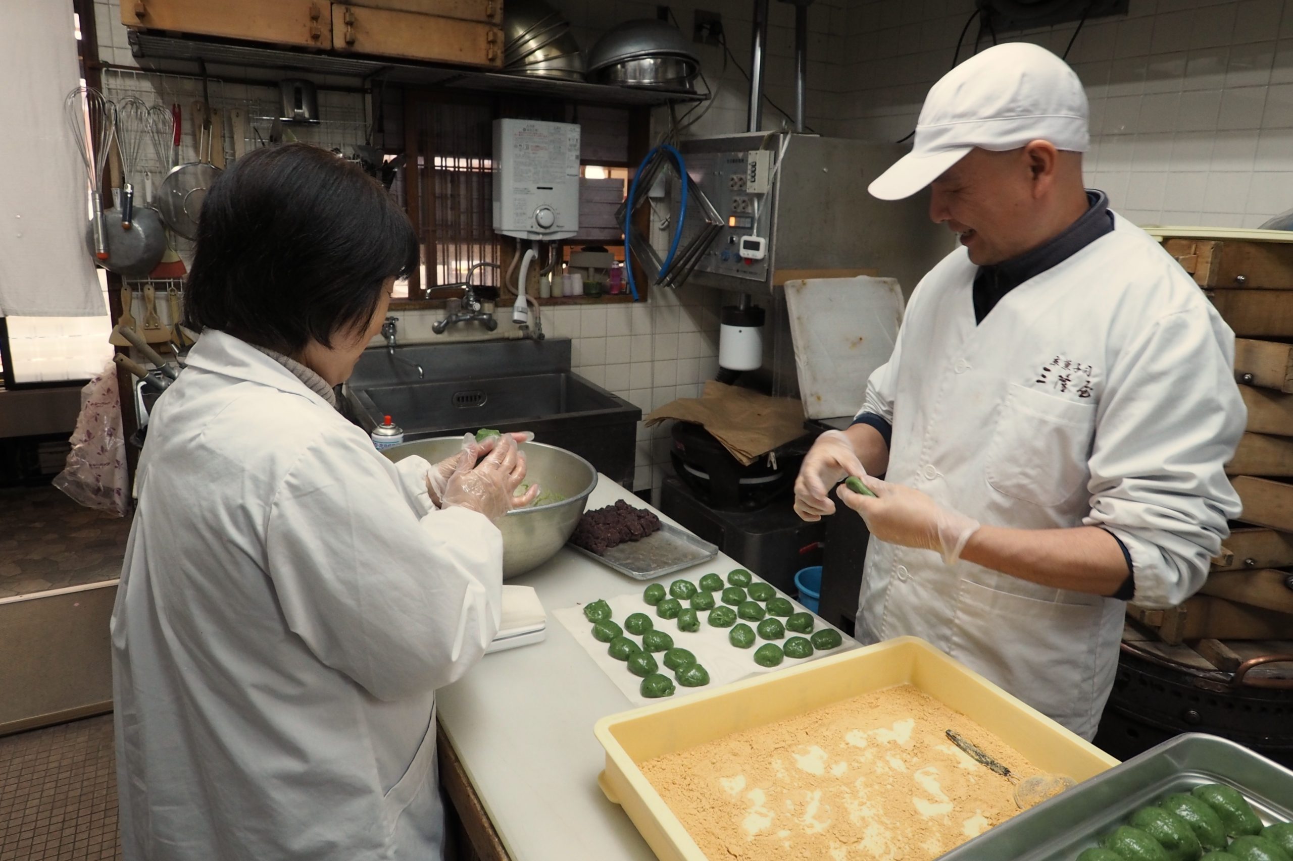 京菓子司三隆屋がこの場所で誕生し、60年近く。作業場で世間話や日々の出来事を語らいながら、一つひとつ丁寧に手を動かすことが私たち夫婦の日常です。