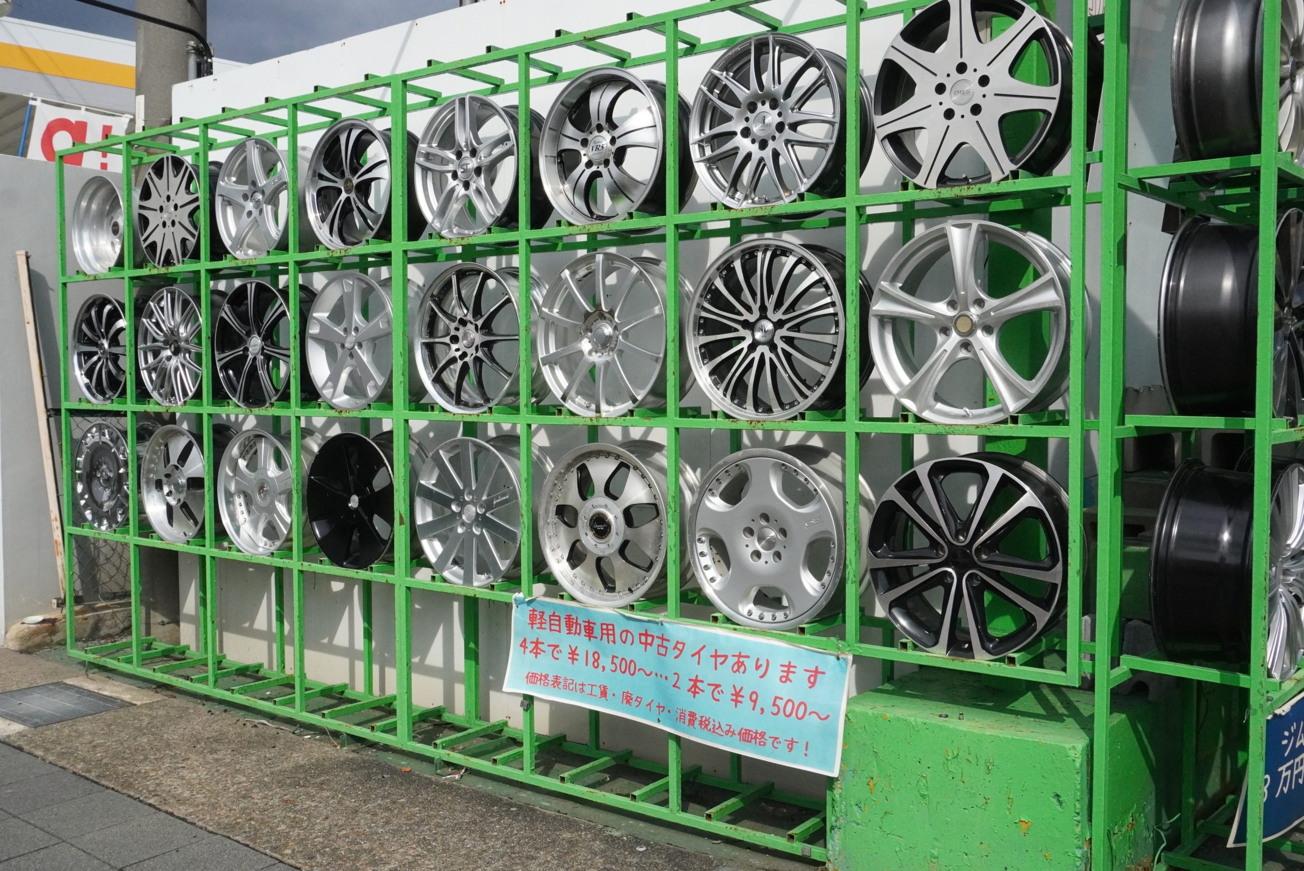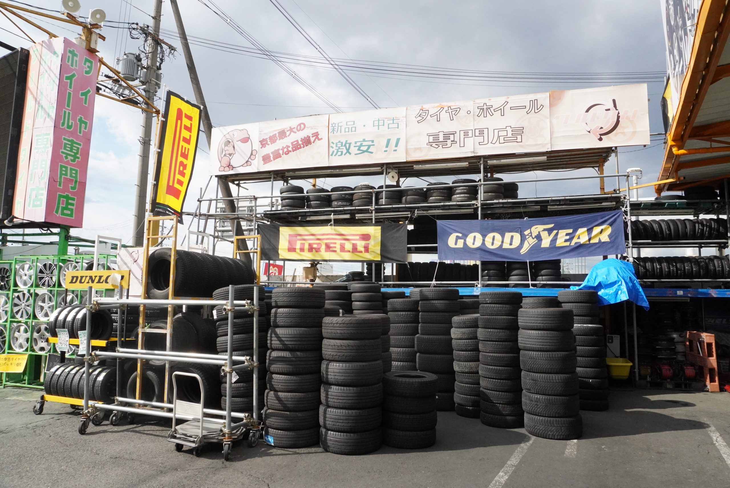 中古タイヤ・ホイールの専門店。軽からワンボックス、外国車まで、様々な車種のホイールが約3500セット揃う。実物がチェックできると府外からも多く来店。クリーニングした状態の良いものばかりで、激安なので費用を抑えてドレスアップがしたい方におすすめ。新品タイヤも他店に負けない価格で販売し、タイヤ交換も大歓迎。