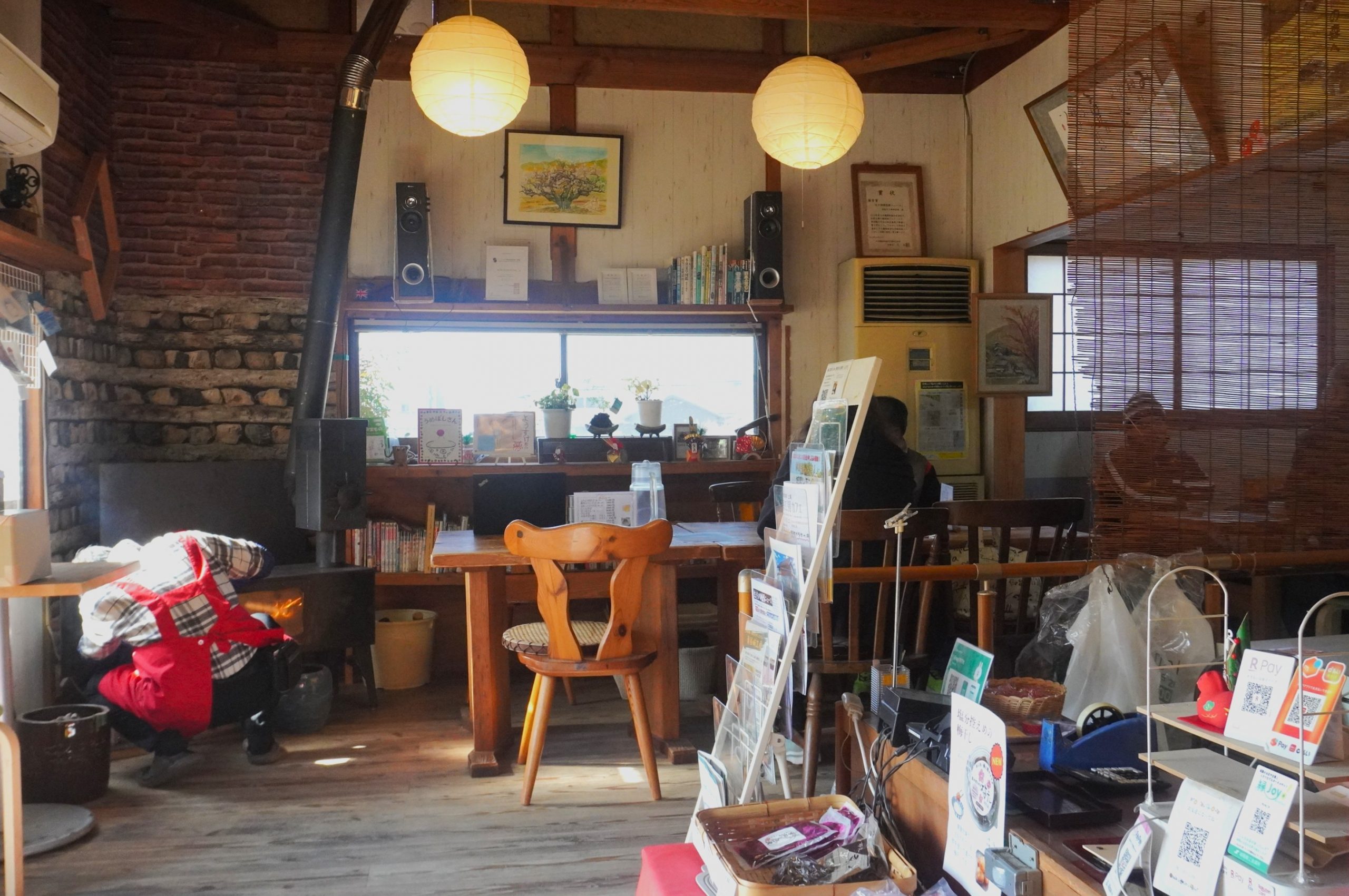 青谷梅工房は「青谷梅林を守りたい」という思いから始まった、地域の憩いの場です。懐かしい顔ぶれや常連さんが集い、ゆっくりとした時間が流れています。工房にある薪ストーブは、知り合いの鍛冶屋さんが手がけたもの。ケーキは地域の方の手作り。無農薬野菜はスタッフが育てました。周りにいる人たちの力に支えられて成り立っています。