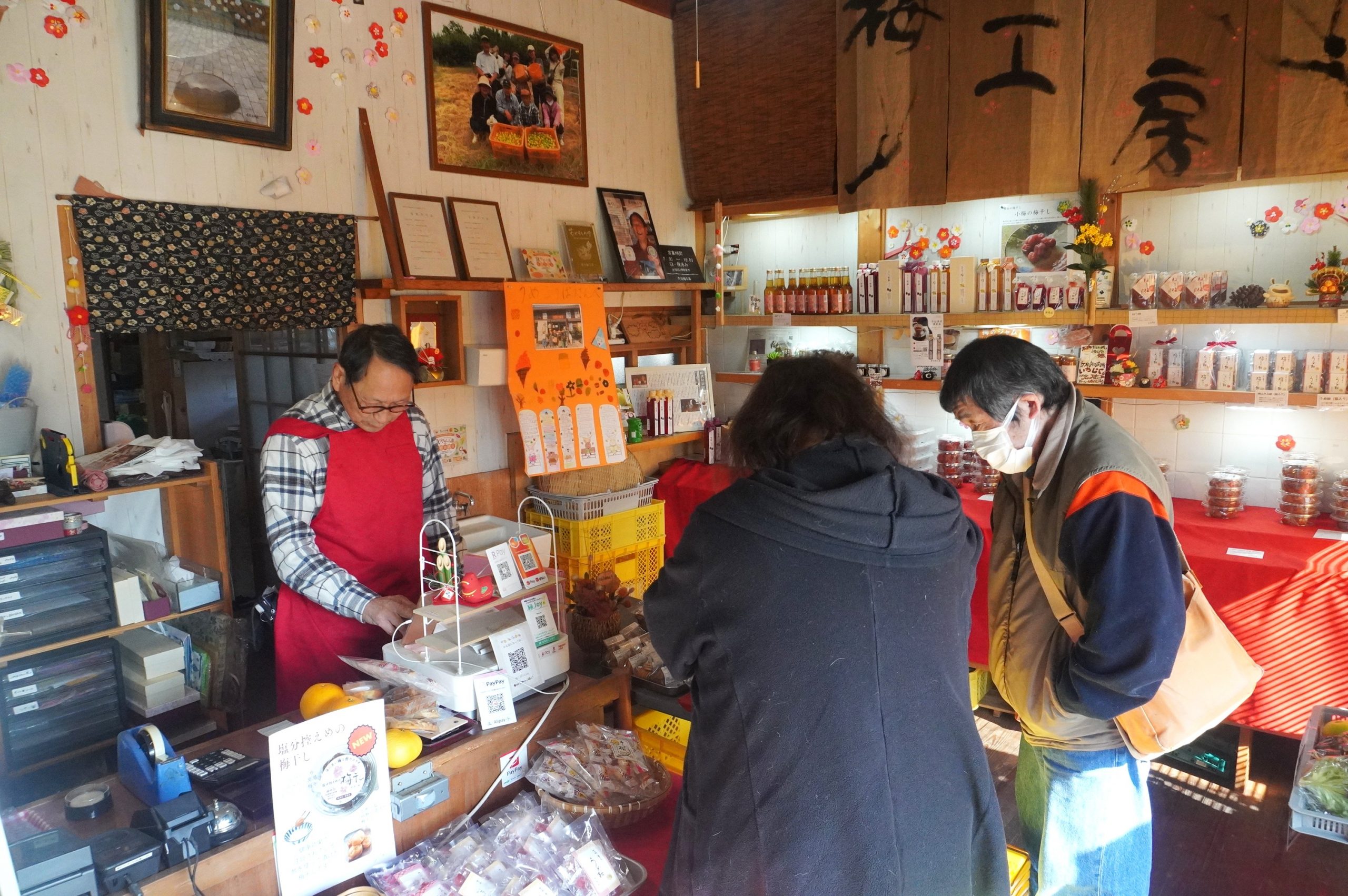 梅干し(しそ梅、白漬梅、あま漬け梅干しなど)、梅ジャム、イチジクジャム、梅シロップ。梅まつりの時には梅しらす丼などの食事の提供もしています。