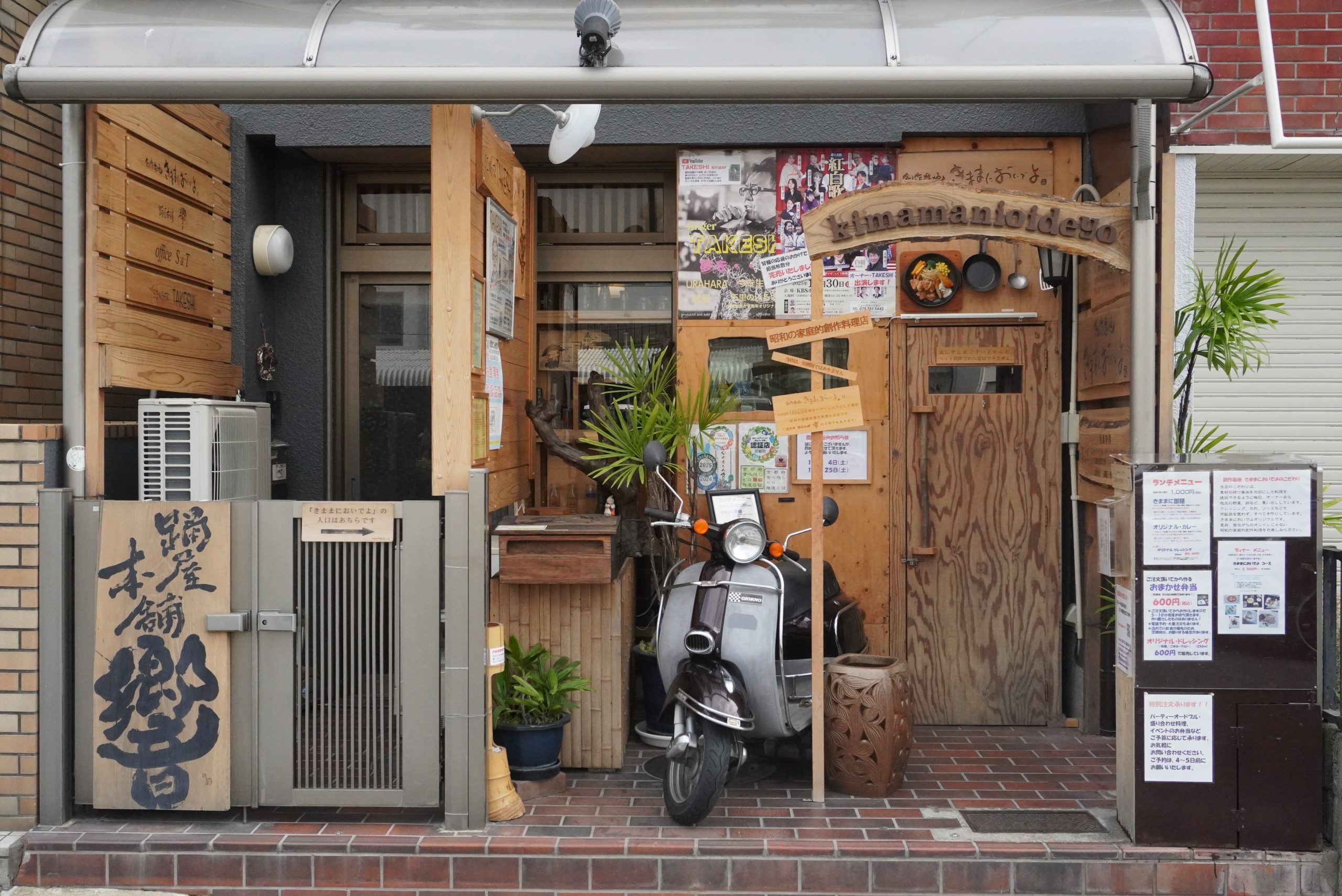 城陽市役所から徒歩2分。創作基地きままにおいでよは「よそゆきではなく普段着の料理」を提供するお店。テーマは「昭和の家庭的創作料理」です。