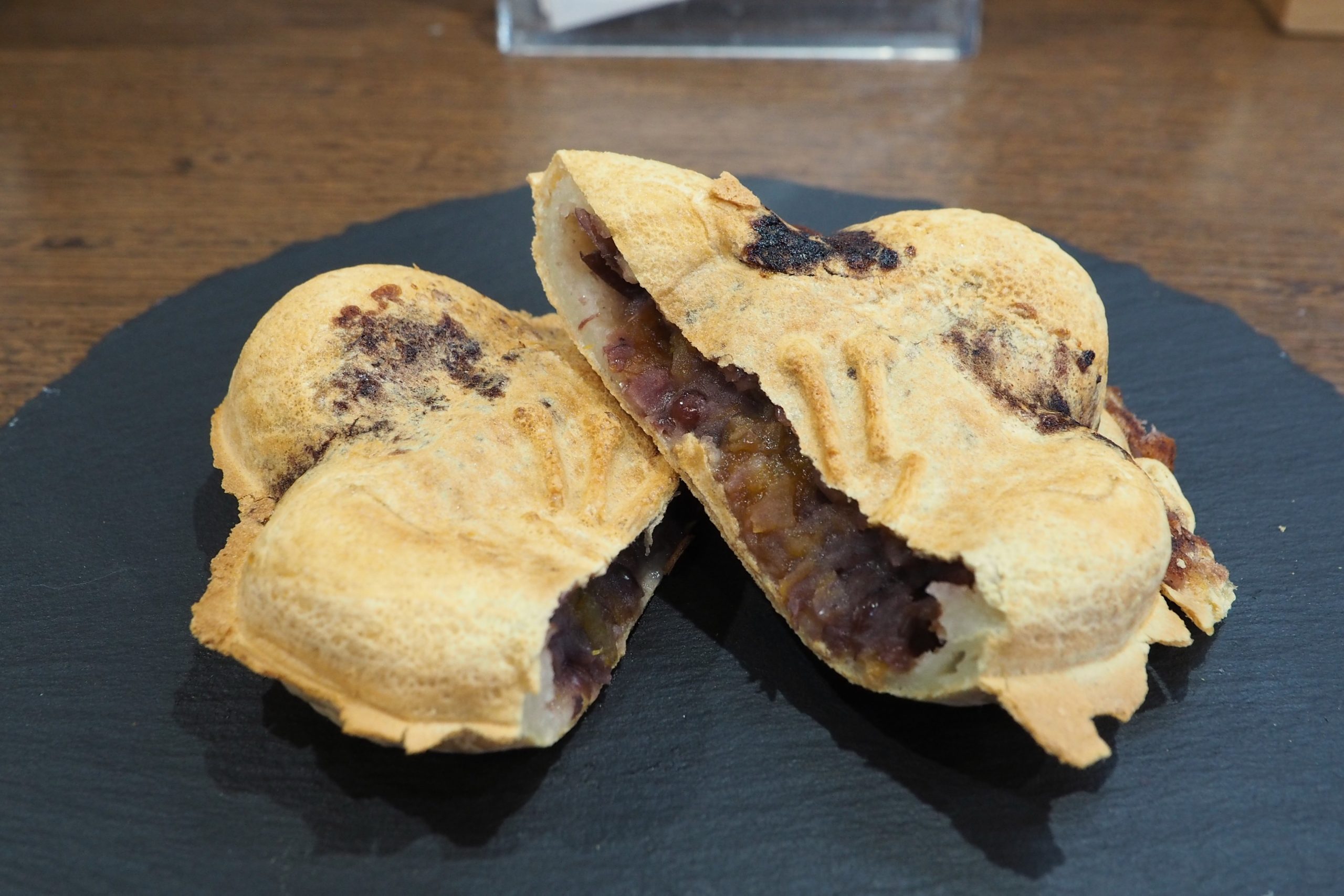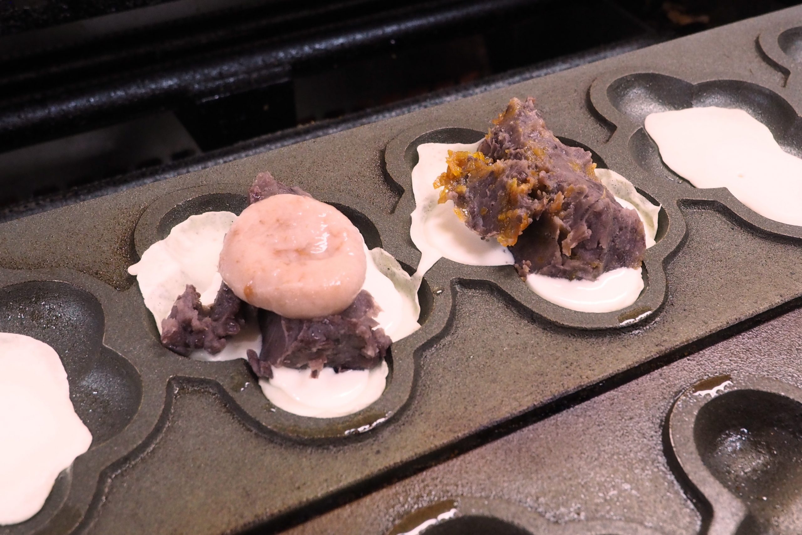 城陽散策のお供やお土産には【りょうこう庵】の「梅乃香焼」をどうぞ。あんこをパリッと焼き上げた皮に包んだ、いわば「梅形のたい焼き」。「完熟梅入り」は、城陽酒造で梅ジュースに使われた芳醇な果肉を特製あんに練り込みました。フルーティーな香りと爽やかな酸味が口いっぱいに広がります。「梅干し白玉入り」は、昔ながらの酸っぱい梅干しを練り込んだ白玉と、あんこの甘みが絶妙に調和。ここでしか出会えない「甘じょっぱい」美味しさが特徴です。