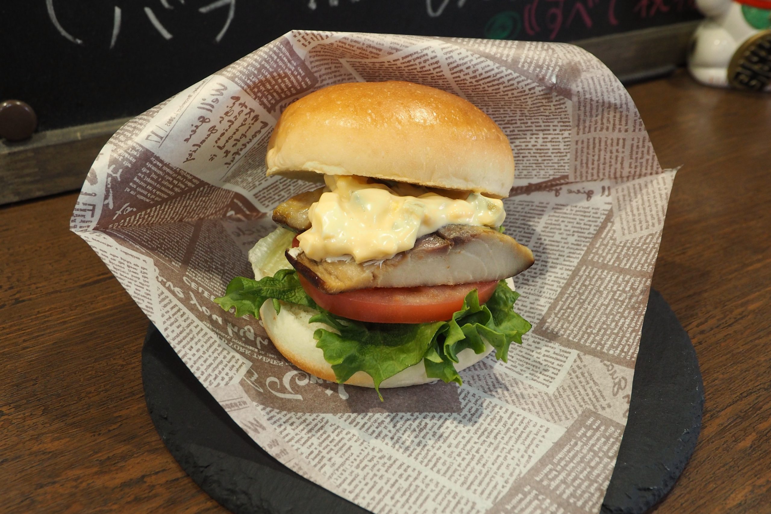 ランチタイムには「燻製さばバーガー」がおすすめ。無添加の塩鯖の燻製に、燻製マヨネーズと燻製卵を贅沢に使った自家製タルタルソースを合わせた、専門店ならではのバーガーです。