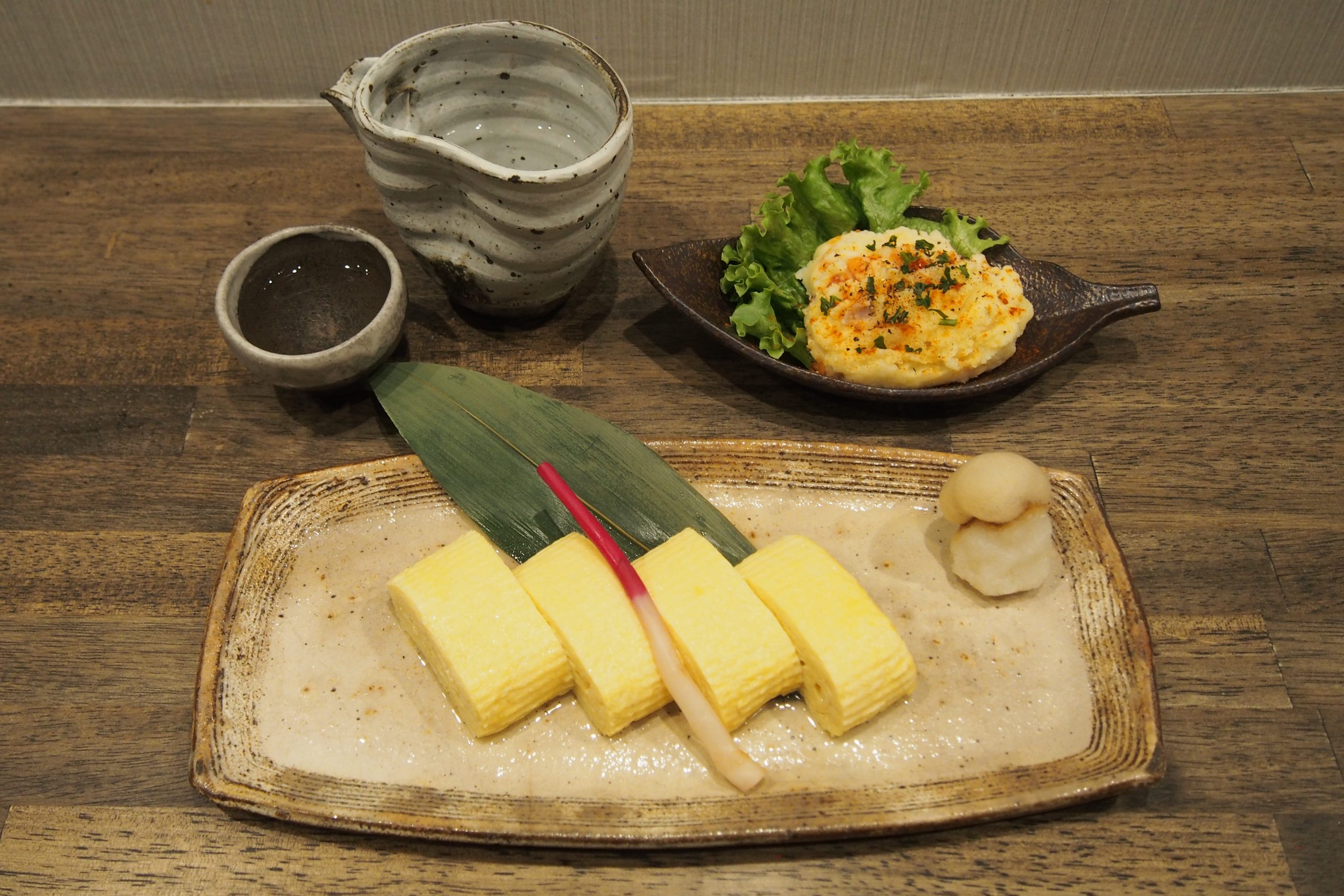 「ラムチョップ」は、じわじわと人気が広がってきました。数量限定なのでお早めに。毎朝丁寧にとる出汁を効かせた「赤玉出し巻き」は、亀岡産の泡醤油を添えて召し上がれ。