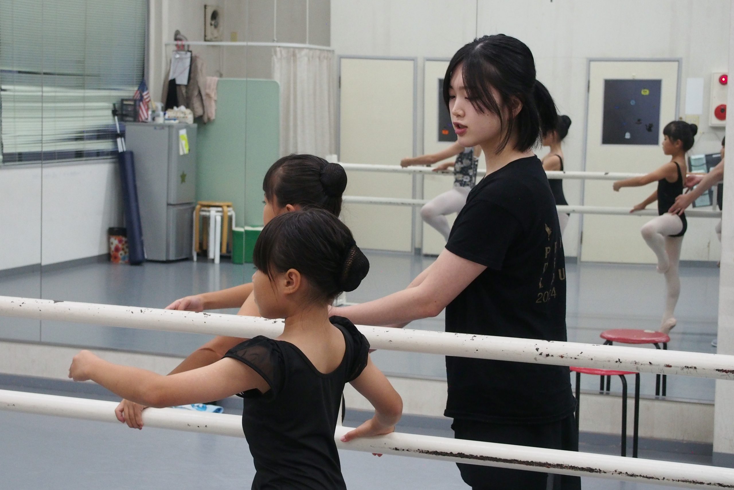 教室のモットーは「楽しく本格的に」。子どもたちと年齢の近い“さっちゃん先生”は、一緒にふざけ合ったりゲームをしたりと和気あいあい。いざレッスンが始まれば、最初に必ず「おはようございます」と挨拶し、正しいバーの持ち方から基礎を徹底的に練習します。オンとオフの切り替えや礼儀作法、集中して取り組む姿勢がしっかりと養われていきます。